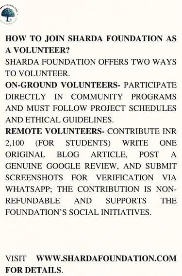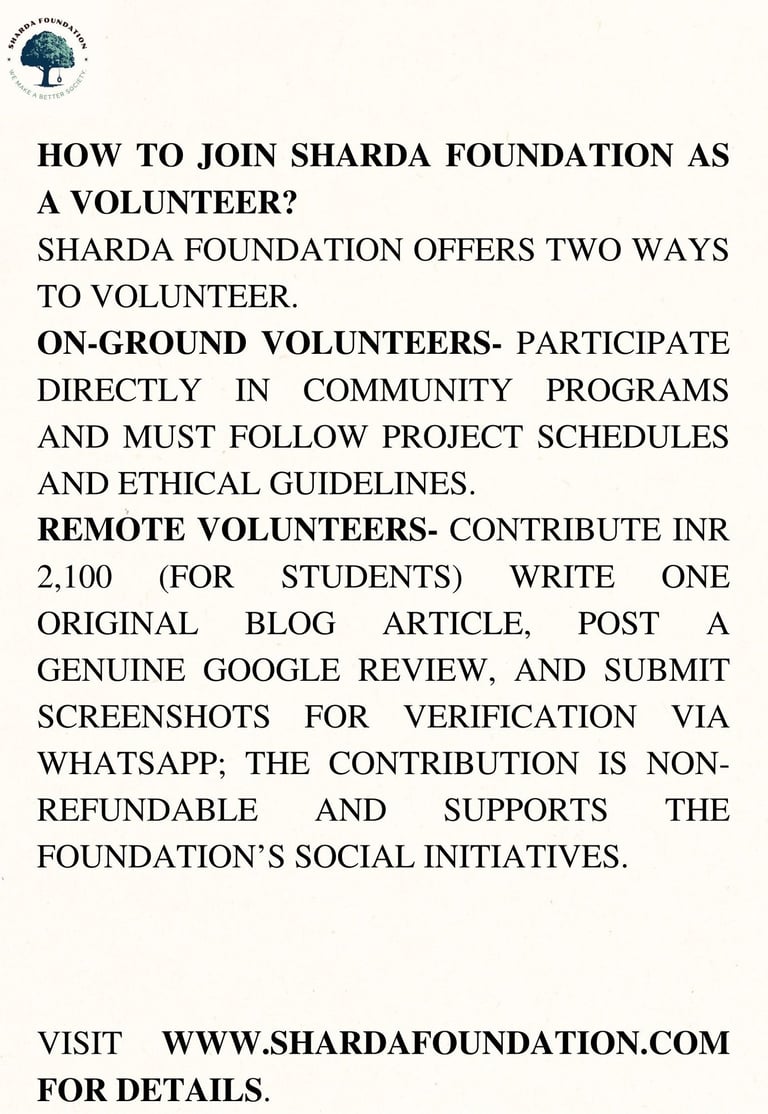 Established in 2010, the Sharda Foundation is a non-governmental organization (NGO) dedicated to making a significant impact in various social sectors, including environmental conservation, skill development, education, social welfare, and sustainable development. Guided by the principles of inclusivity, innovation, and empowerment, the foundation has steadily grown into a beacon of hope and progress for numerous communities across India.